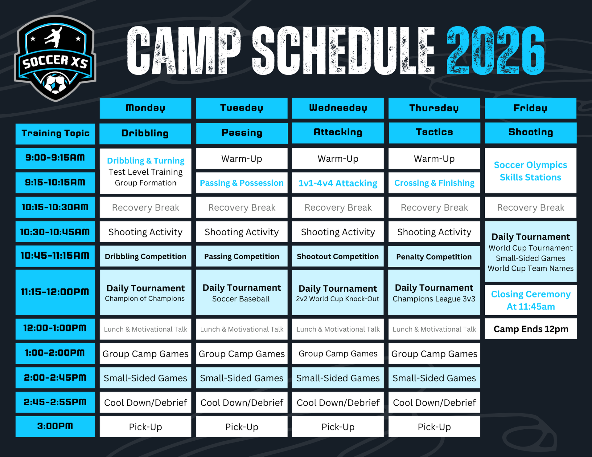 For over 15 years, Soccer XS has delivered high-quality soccer camps for players of all ages and ability levels.